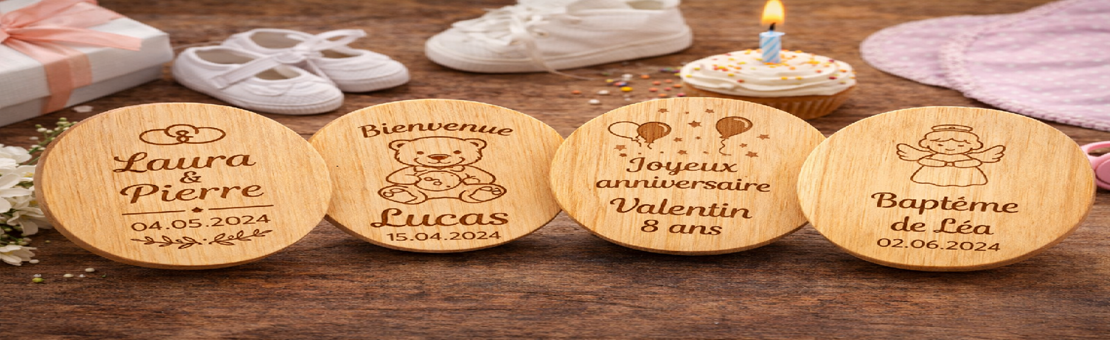 Nous sommes heureux de vous ouvrir les portes de notre univers dédié aux objets personnalisés, imaginés et réalisés avec passion dans notre atelier. Ici, la noblesse du bois naturel se mêle à la créativité pour donner naissance à des pièces uniques, pensées pour accompagner les moments importants de votre vie.